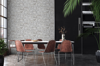 Non-woven gray washable brick wallpaper, brick wall - M52909, Loft, Ugépa