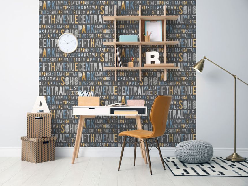Non-woven washable wallpaper with texts, M50809, Loft, Ugépa