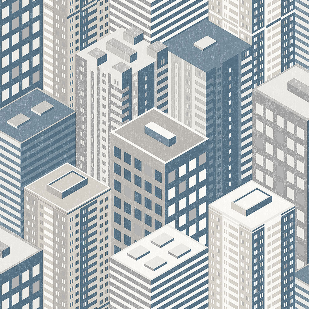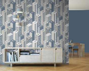 Non-woven wallpaper with washable vinyl surface - motif of a big city, skyscrapers.