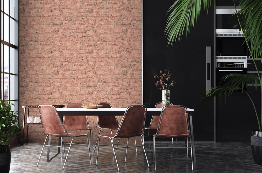Non-woven washable brick wallpaper, brick wall.