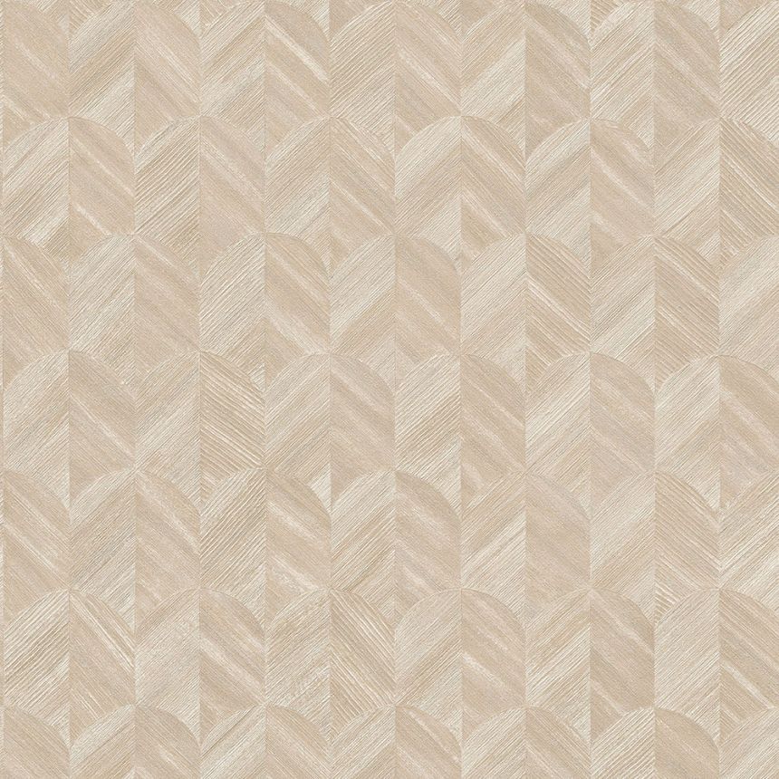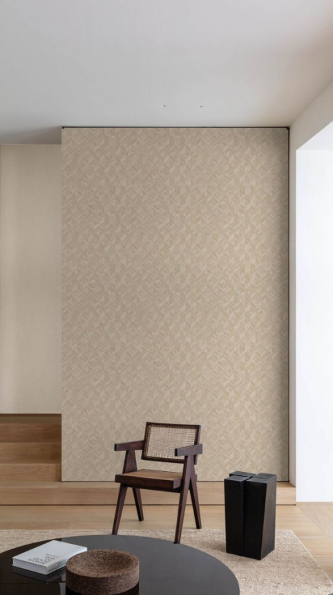 Geometric design wallpaper, finely textured, beige with soft reflections.