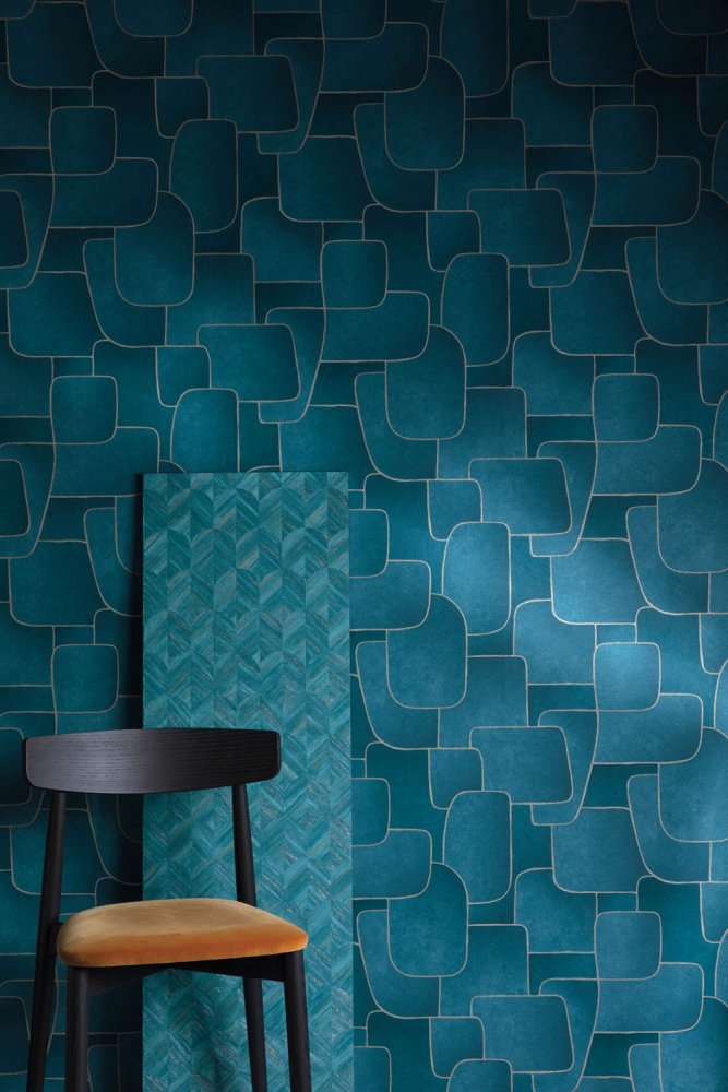 Geometric pattern wallpaper blue MU3106 Muse, Grandeco