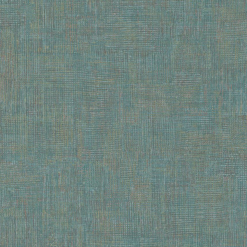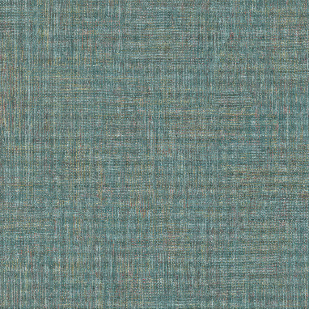 Non-woven wallpaper with textile texture, turquoise with golden reflections.