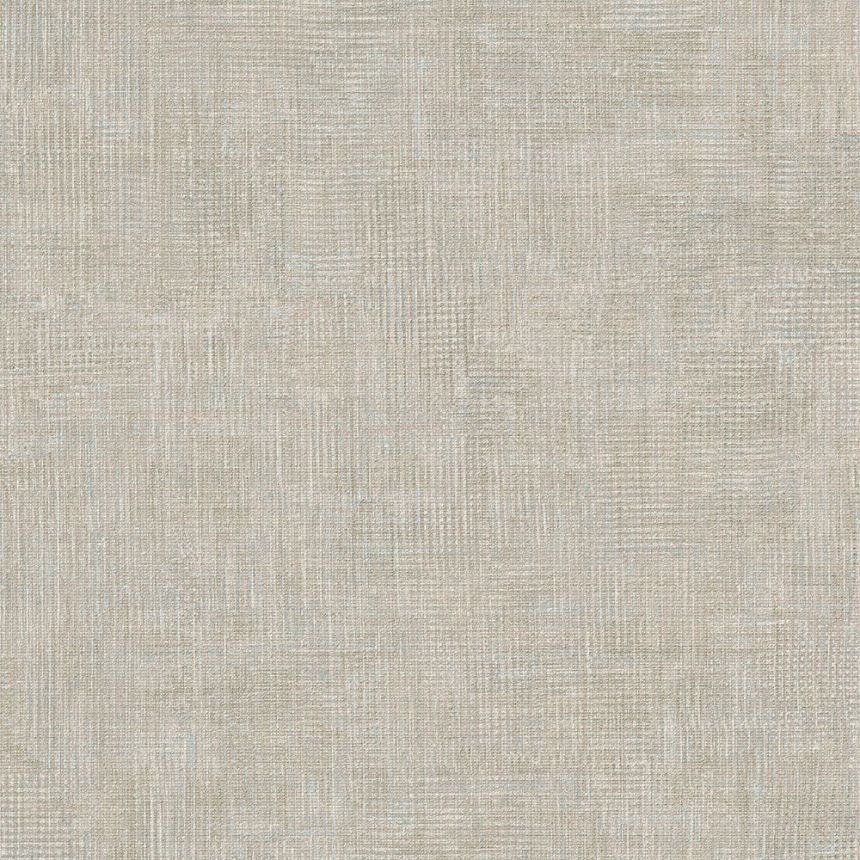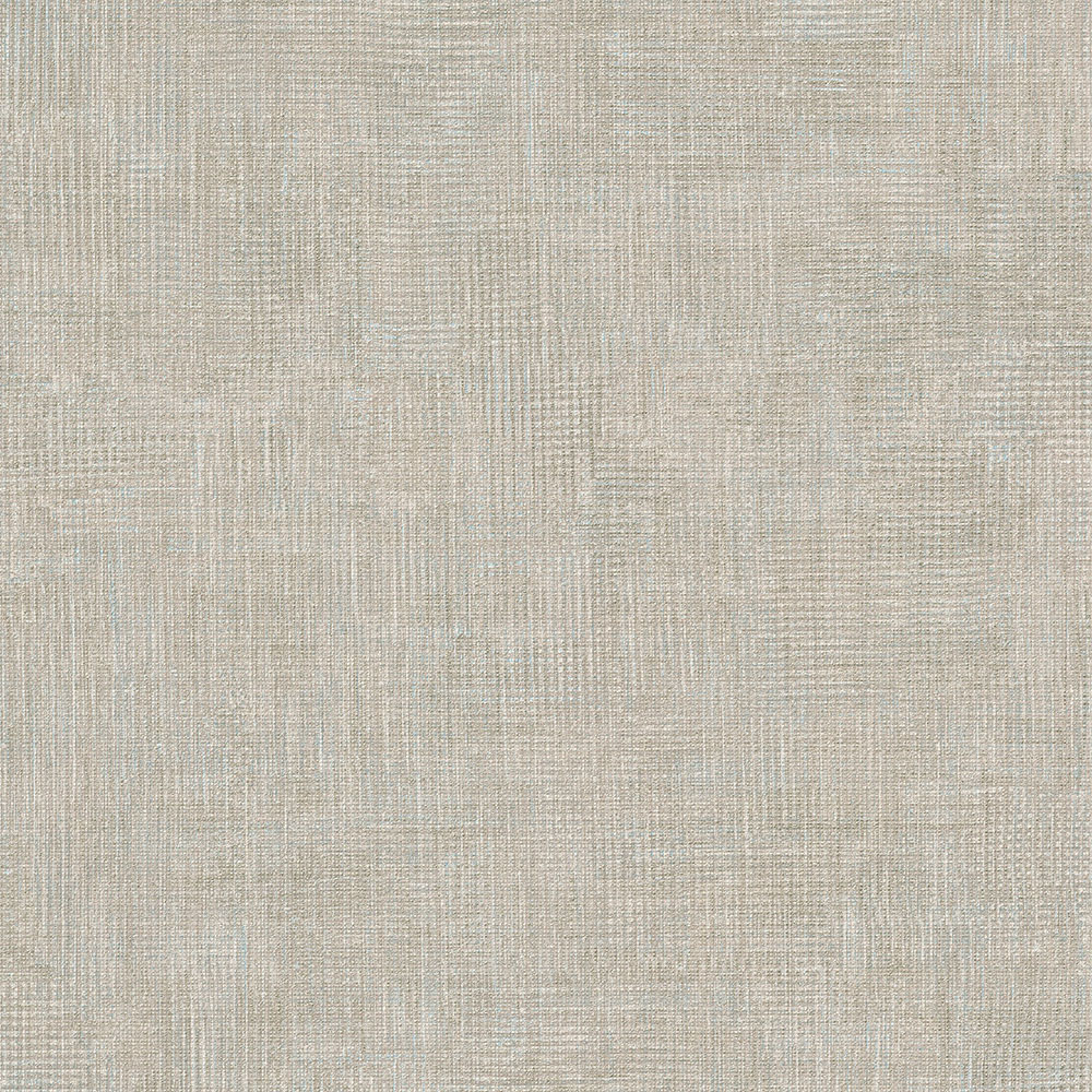 Non-woven wallpaper with textile texture in grey with blue checks.