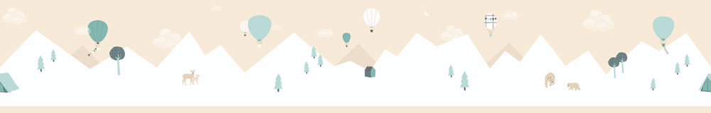 Creamy children's self-adhesive border with mountain and balloon motifs.