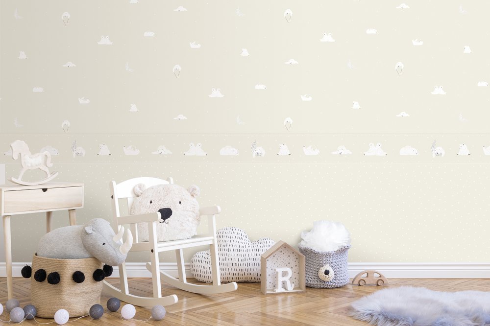 The NOA children's wallpaper collection is inspired by fun and tender children's drawings. With these wallpapers, you can create a poetic world full of animals, flying balloons and cars in your child's room, which when combined with wallpapers with motifs of polka dots, stripes and clouds will surely be perfect.