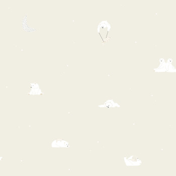 Beige children's non-woven wallpaper for children's room, motifs of polar bears.
