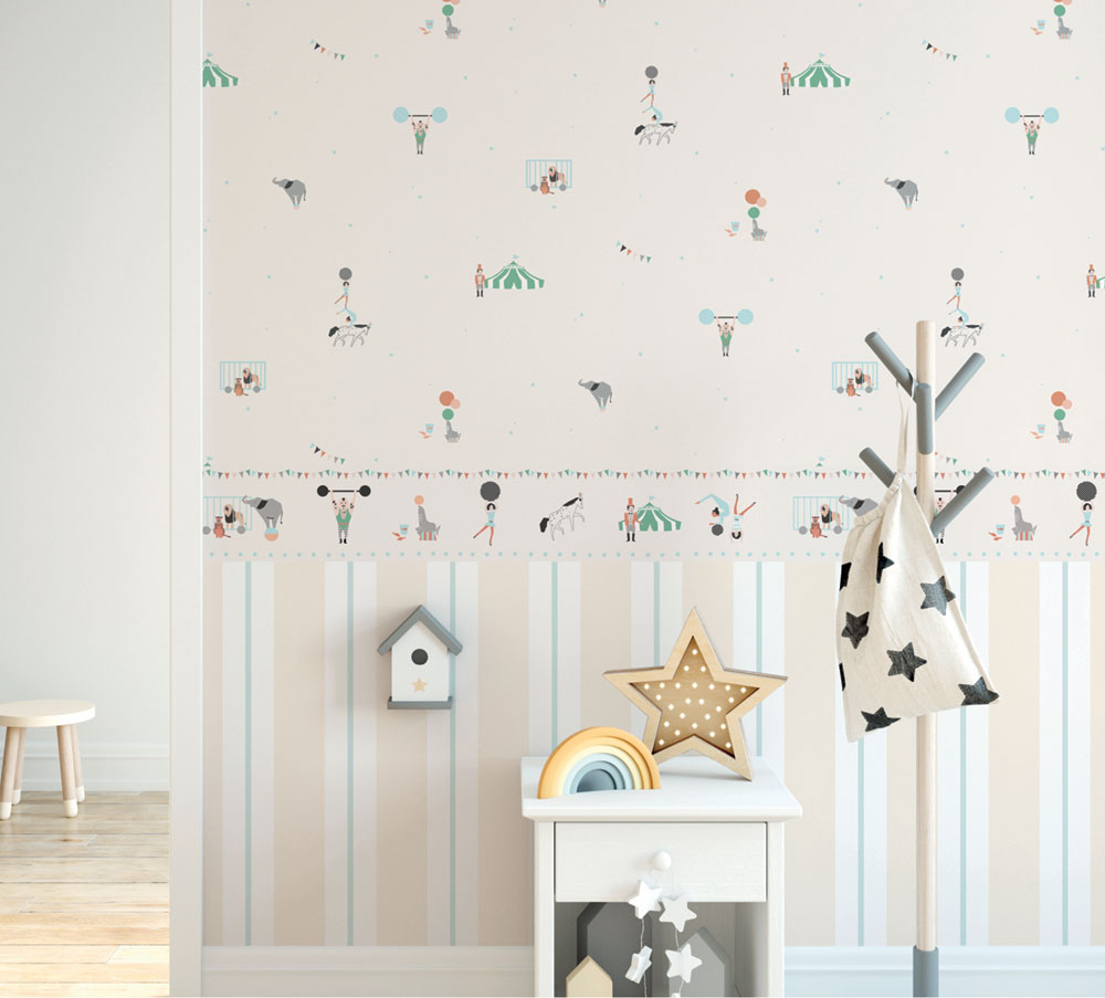 The NOA children's wallpaper collection is inspired by fun and tender children's drawings. With these wallpapers, you can create a poetic world full of animals, flying balloons and cars in your child's room, which when combined with wallpapers with motifs of polka dots, stripes and clouds will surely be perfect.