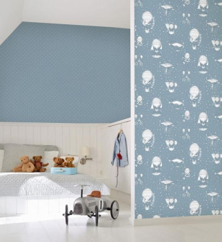 Blue children's wallpaper - balloons and airships JR3004, Jack´N Rose 2024, Grandeco