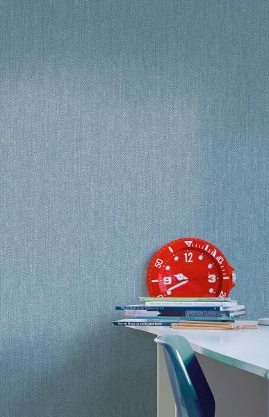 Blue non-woven monochrome wallpaper, fabric look. Can be easily combined with related wallpapers.