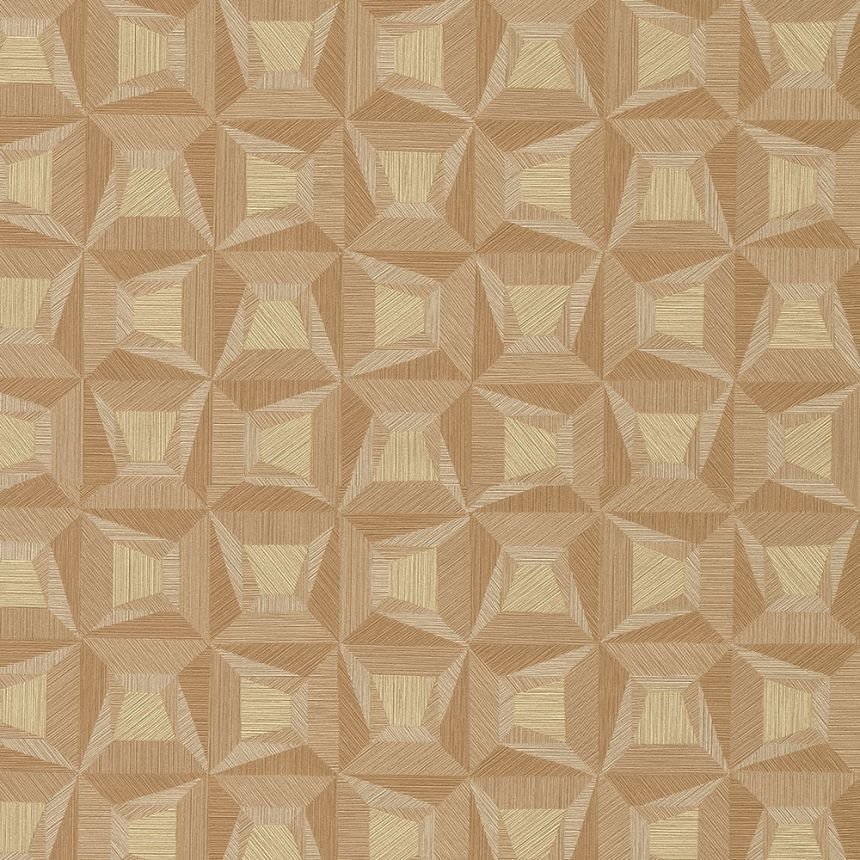 Non-woven geometric design wallpaper, pattern in orange shades.