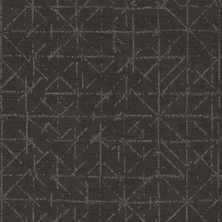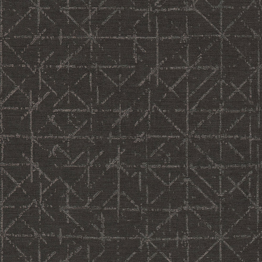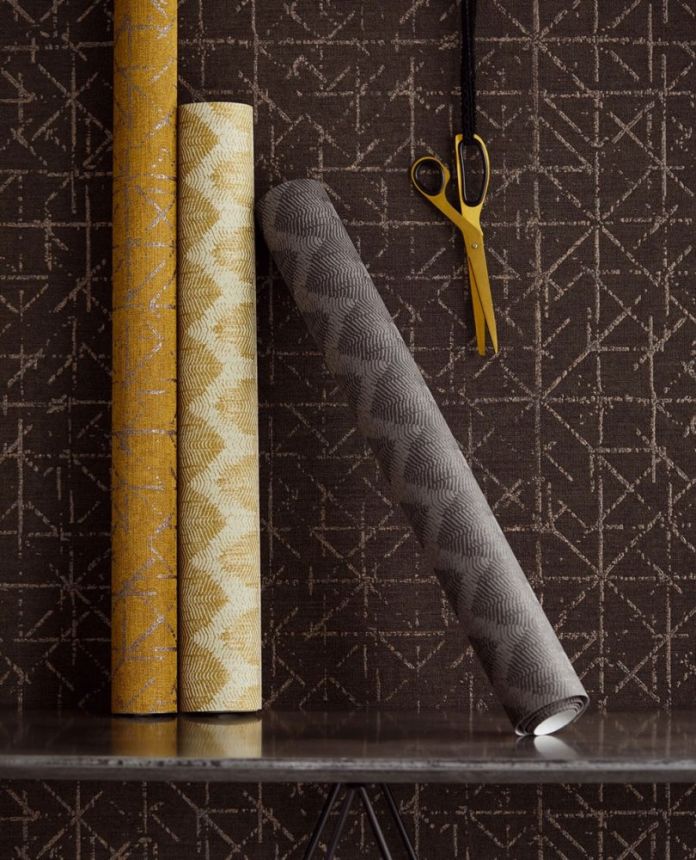 Metallic, partially wiped, geometric pattern on a dark brown background with a fine textile structure.