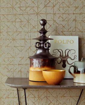 Metallic effects add luxury and style to your walls. Metallic, partially wiped, geometric pattern on a gray background with a fine textile structure.