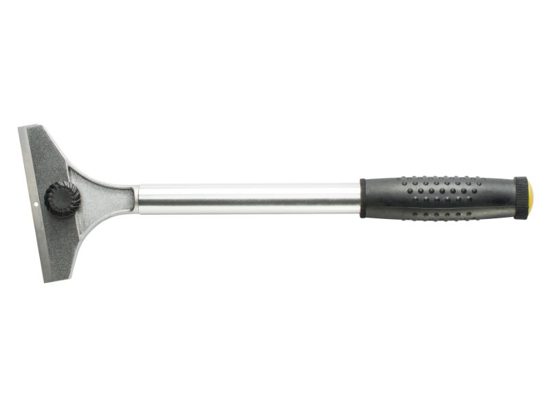 The scraper is made of a solid metal, with a plastic handle. It can be used at an obtuse angle. Used to remove seal, paint and adhesive residues. Width 100 mm. The blade can be replaced.