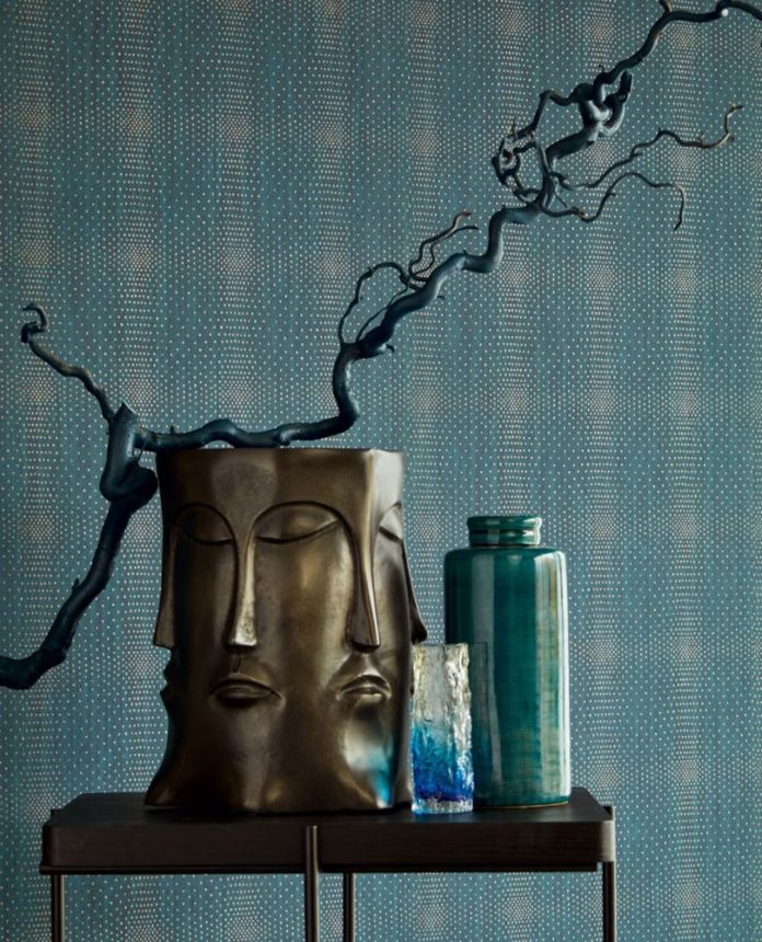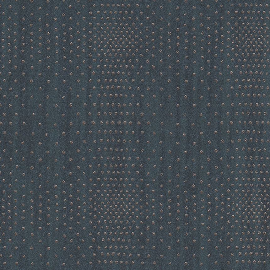 Metallic effects add luxury and style to your walls. Brindle non-woven wallpaper in dark blue shades, irregular metallic bronze dots.