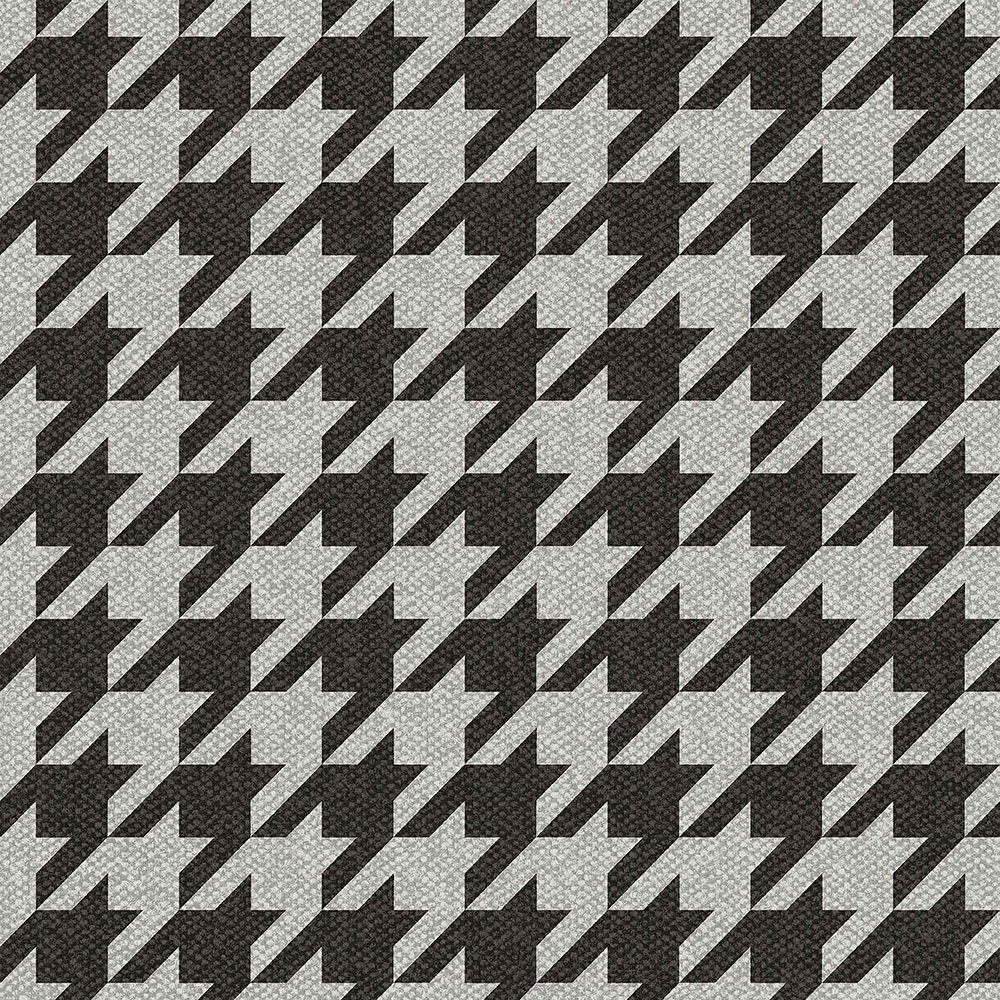 Delicate non-woven wallpaper with a black-gray pattern of rooster footprints on a white-gray textured background.