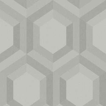 Non-woven geometric design wallpaper - gray hexagons on a white pearl textured background.