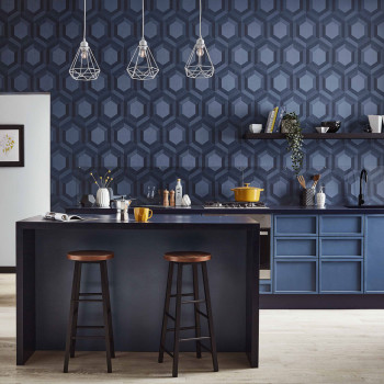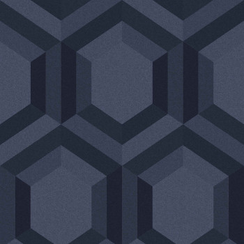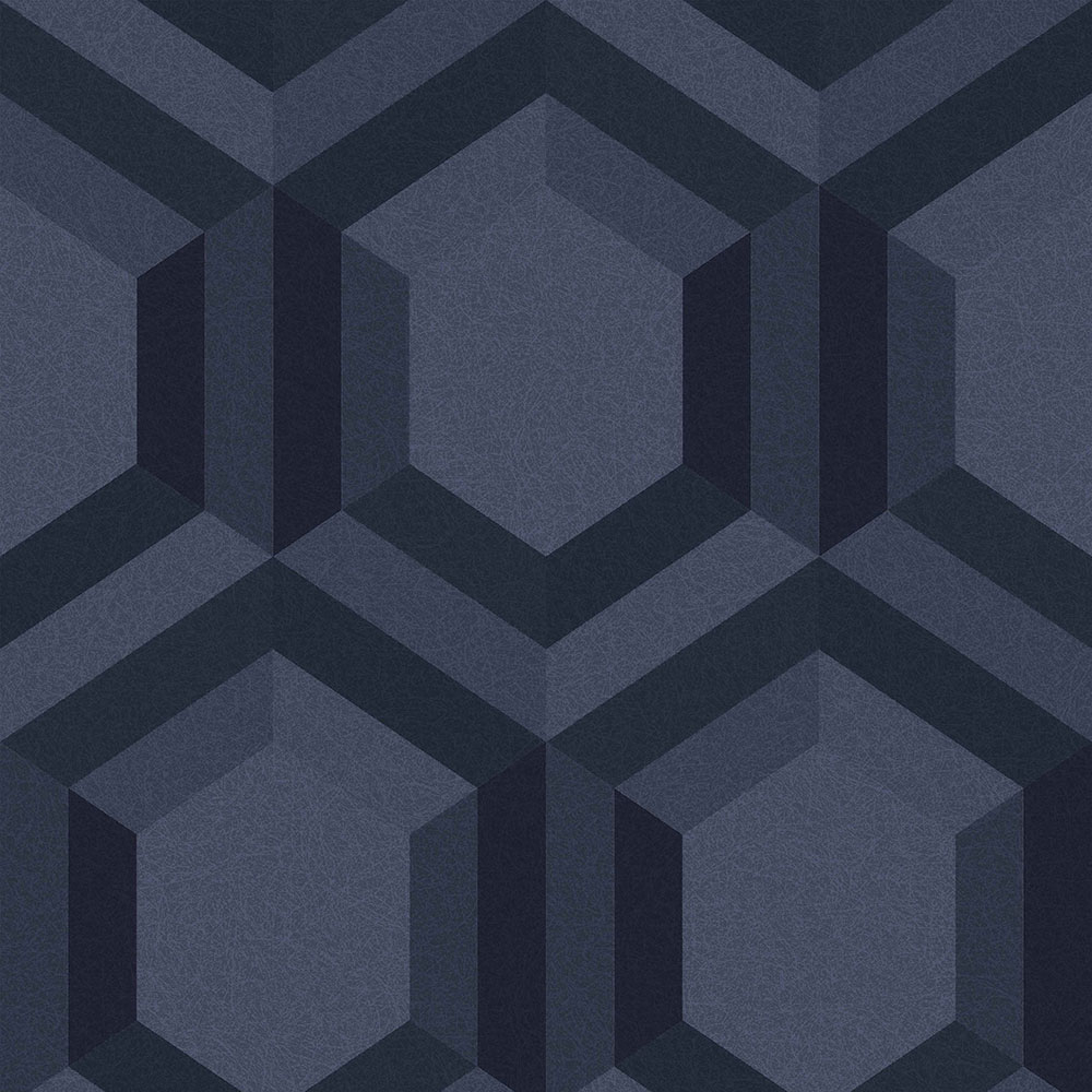 Non-woven geometric design wallpaper - blue hexagons on a dark blue textured background.