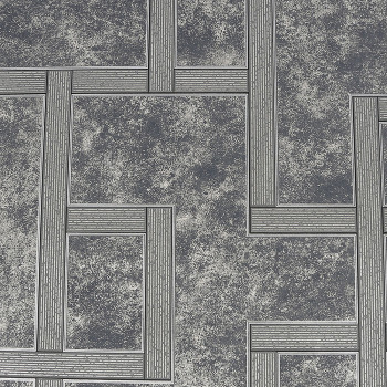 Luxury non-woven wallpaper with a distinctive concrete texture with geometric shapes on a dark gray background with silver hues.