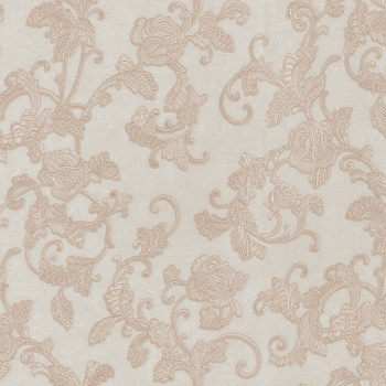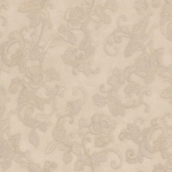 Roll width 1.06m. Creamy luxury non-woven wallpaper - vinyl surface, beige baroque ornamental pattern with golden glitters.