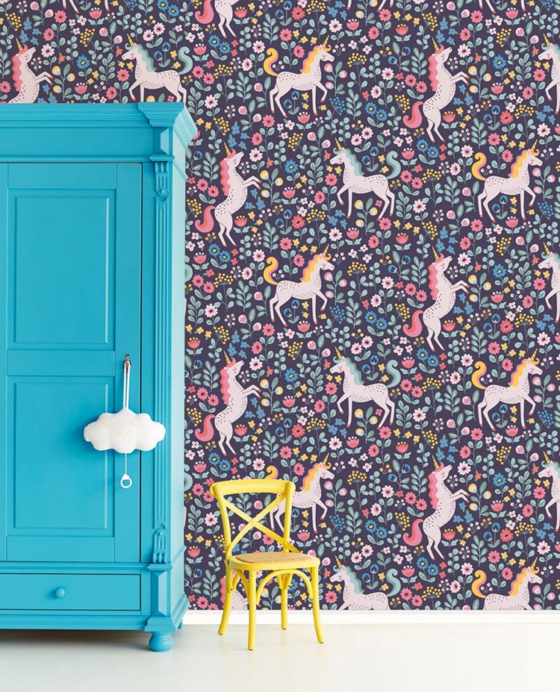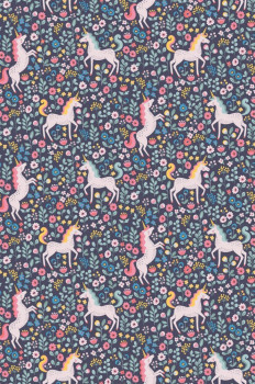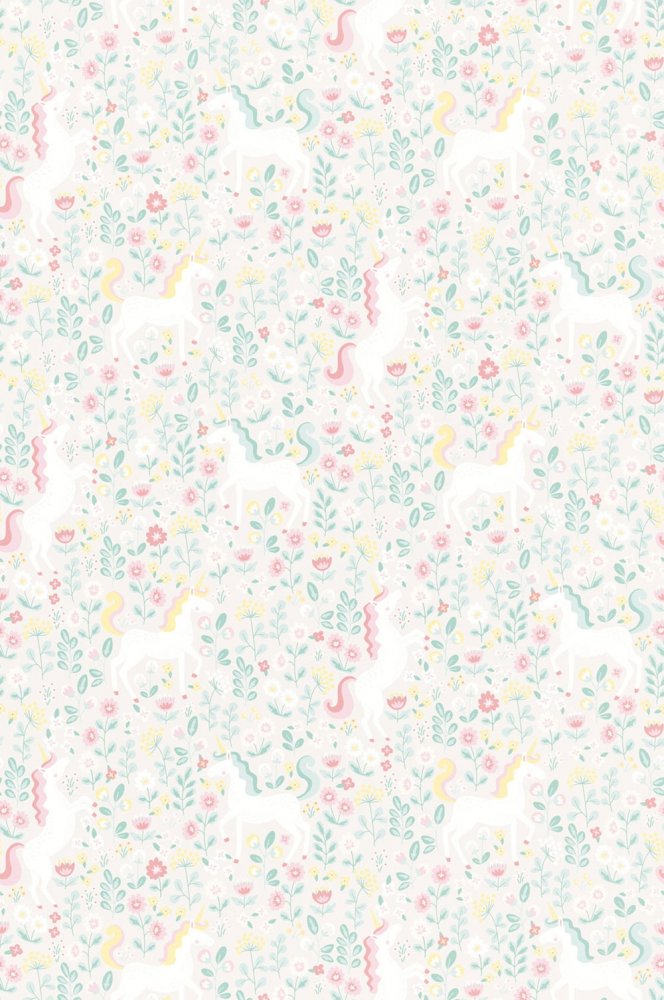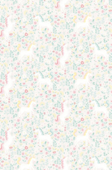 Fantasy flowers and mythical unicorns in pastel colors - develop children's imagination and fantasy. The wallpaper has a continuous pattern, for a larger width you just need to buy another piece.