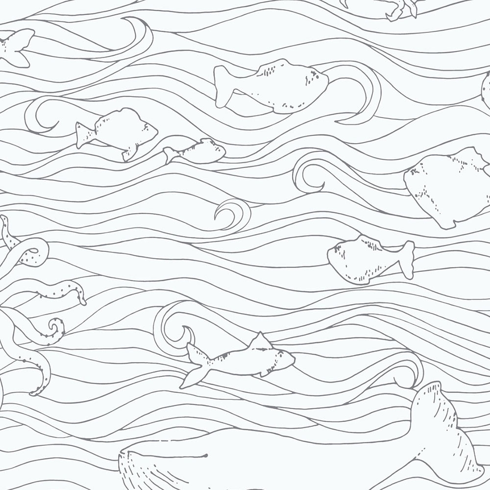 Your children can discover an underwater world - whales in waves, crabs, octopuses ... Delicate soft children´s non-woven wallpaper.