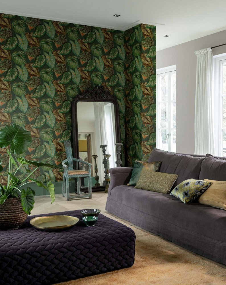 Textured non-woven green leaves wallpaper TA25054 Tahiti, Decoprint