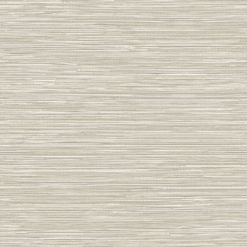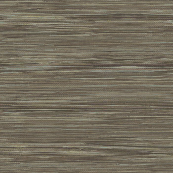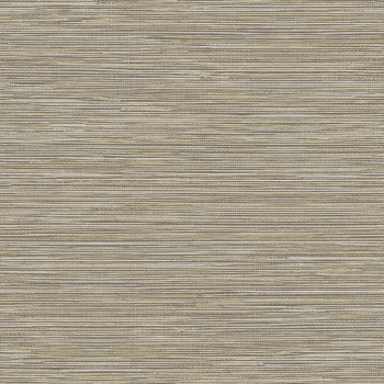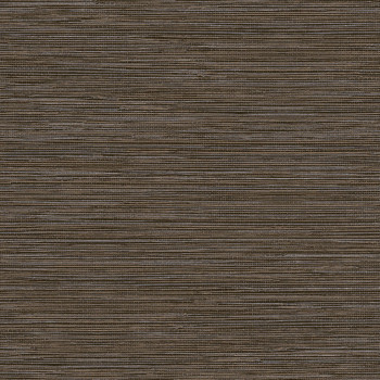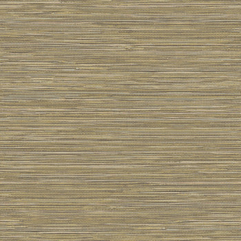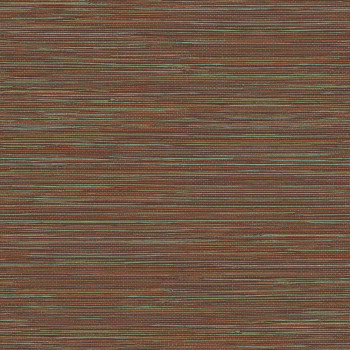 Non-woven wallpaper with textile structure with green, orange and brown stripes.