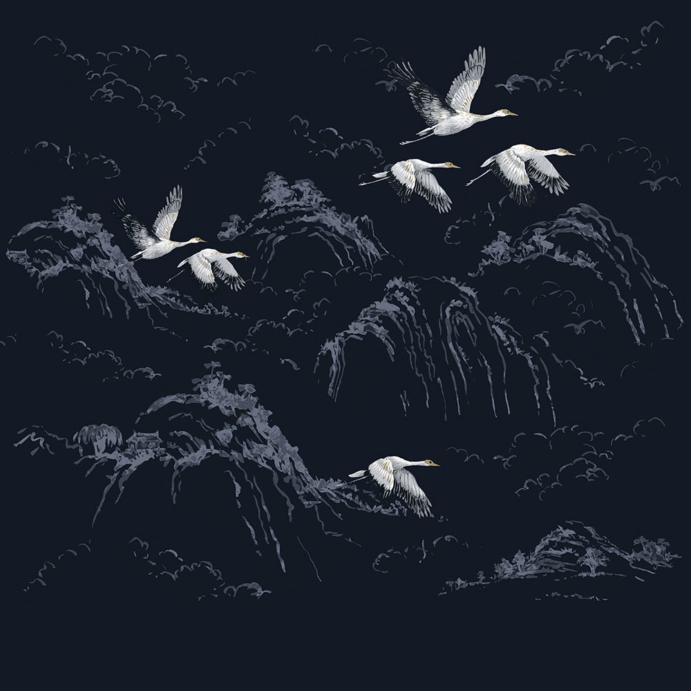 Non-woven wall mural with flying storks on a dark blue smooth background will bring a pleasant atmosphere into the interior.