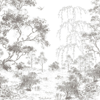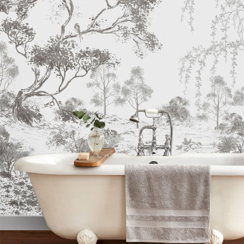Non-woven wall mural with a landscape motif on a bright smooth background brings a pleasant atmosphere into the interior.