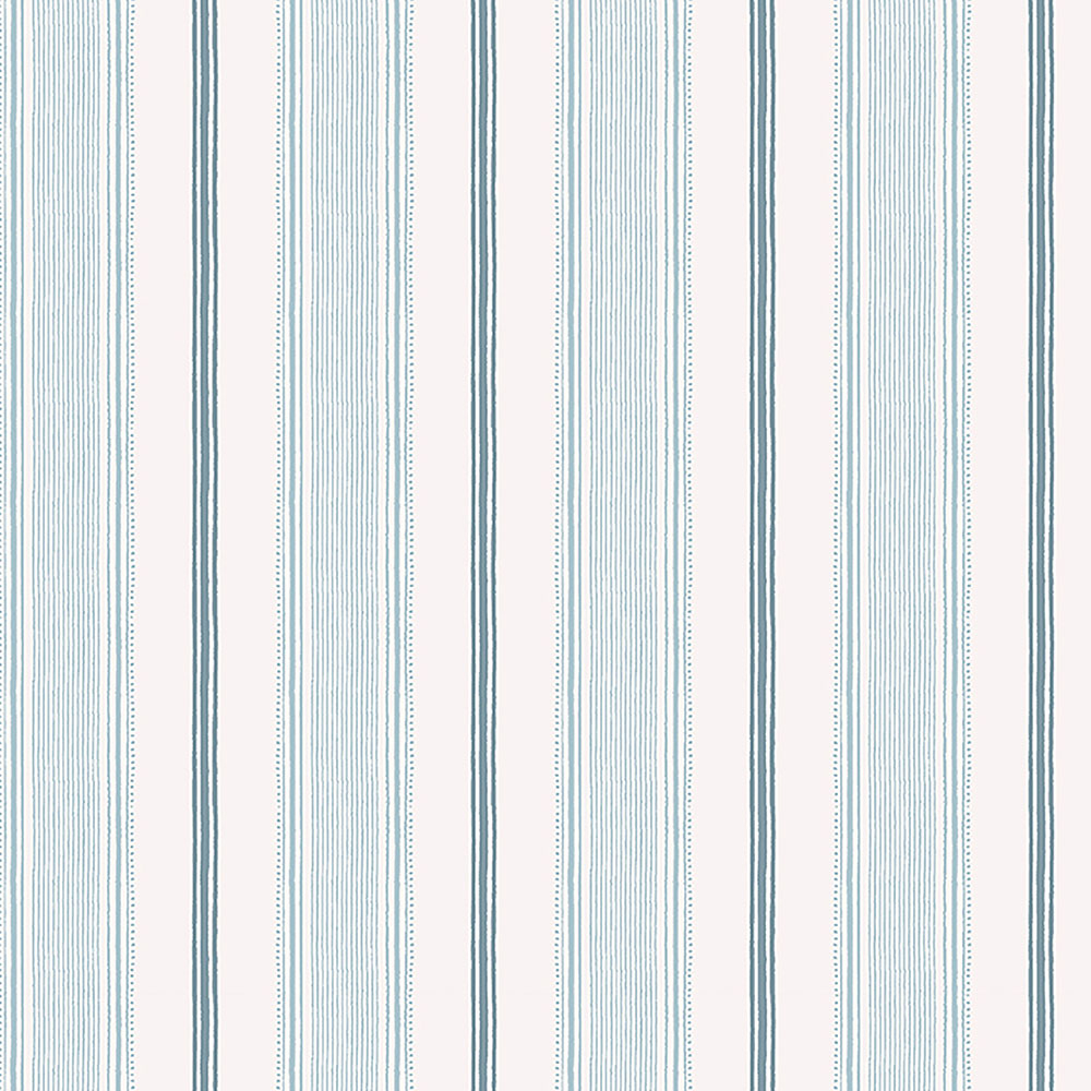 Non-woven wallpaper with blue stripes on a white smooth background brings a pleasant atmosphere into the interior.