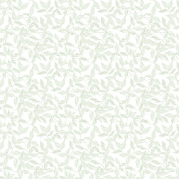 Non-woven wallpaper with light green leaves on a white smooth background brings a pleasant atmosphere into the interior.