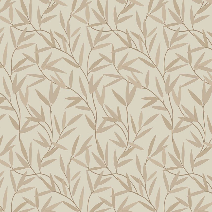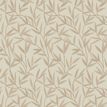 Non-woven wallpaper with brown bamboo branches on a cream smooth background brings a pleasant atmosphere into the interior.