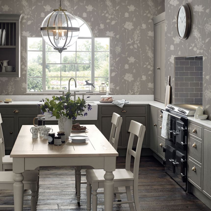 Non-woven wallpaper with white-grey flowers 113344, Laura Ashley, Graham & Brown