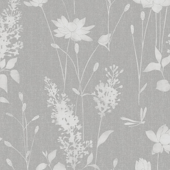 Romantic non-woven wallpaper with white-gray flowers on a gray smooth background will bring a pleasant atmosphere into the interior.