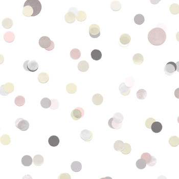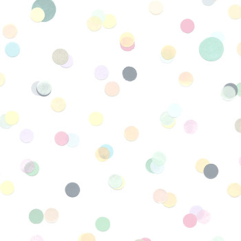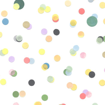 Brightly colored polka dots on a smooth non-woven wallpaper. Can be easily combined with related wallpapers.