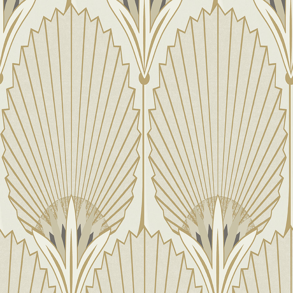 Non-woven wallpaper with golden geometric patterns on a textured cream background brings a pleasant atmosphere of luxury to the interior.