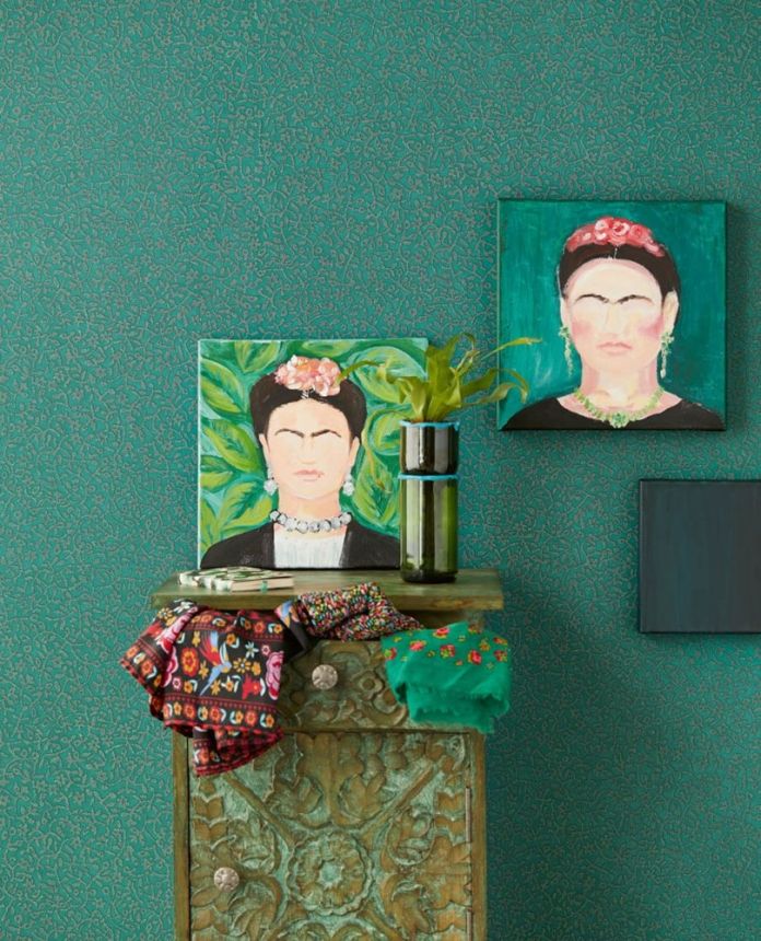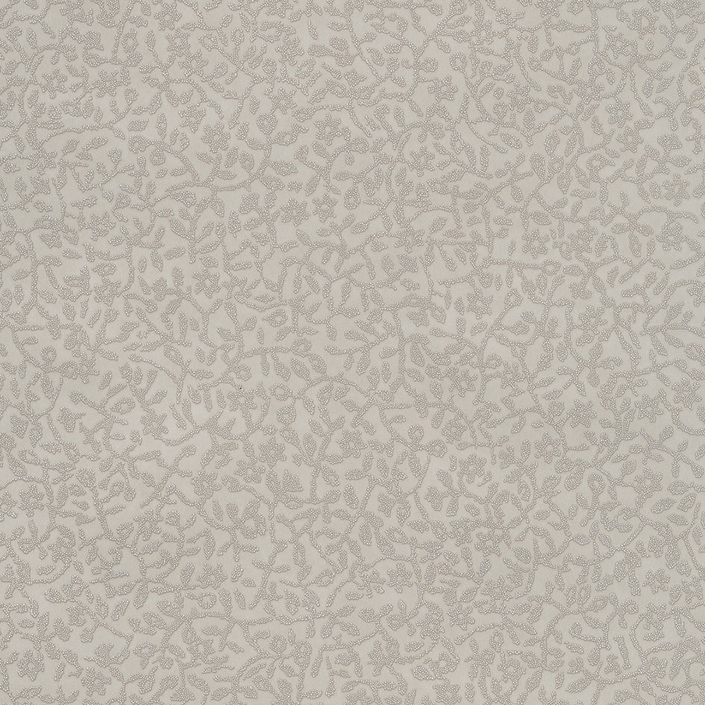Finely embossed floral motif formed by small dots. Background matt light gray-beige, pattern gray-beige, natural dots. Collection inspired by a work of the bold, independent and stylish Frida Kahlo.