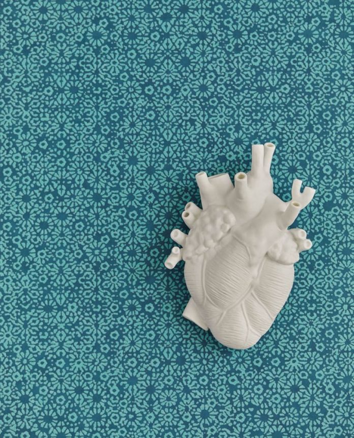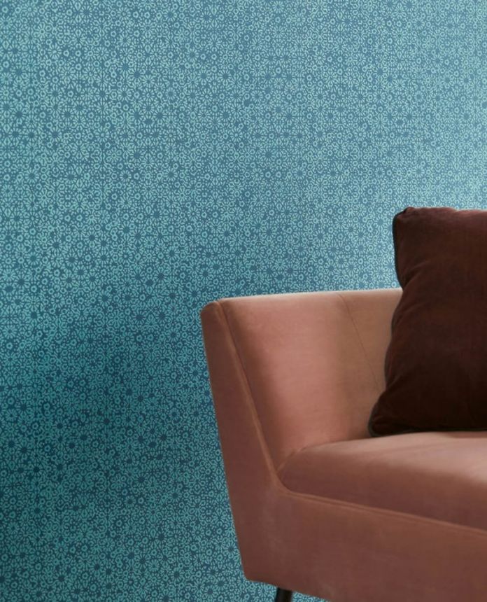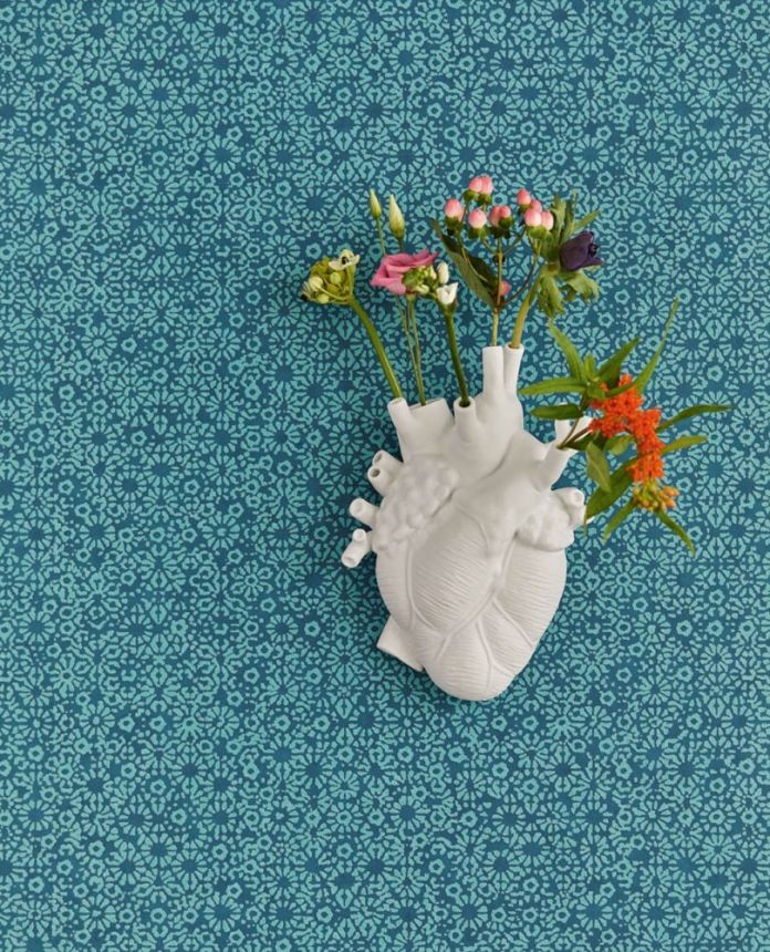 Finely embossed roses design. Matte blue background, turquoise pattern with gentle reflections. Collection inspired by a work of the bold, independent and stylish Frida Kahlo.