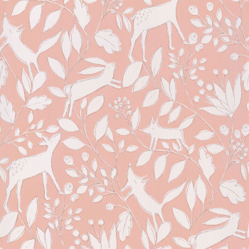 Pink non-woven wallpaper for children's room - forest animal wallpaper.
