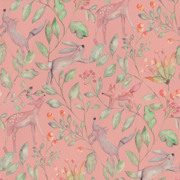 Pink non-woven wallpaper for children's room - wallpaper forest animals.