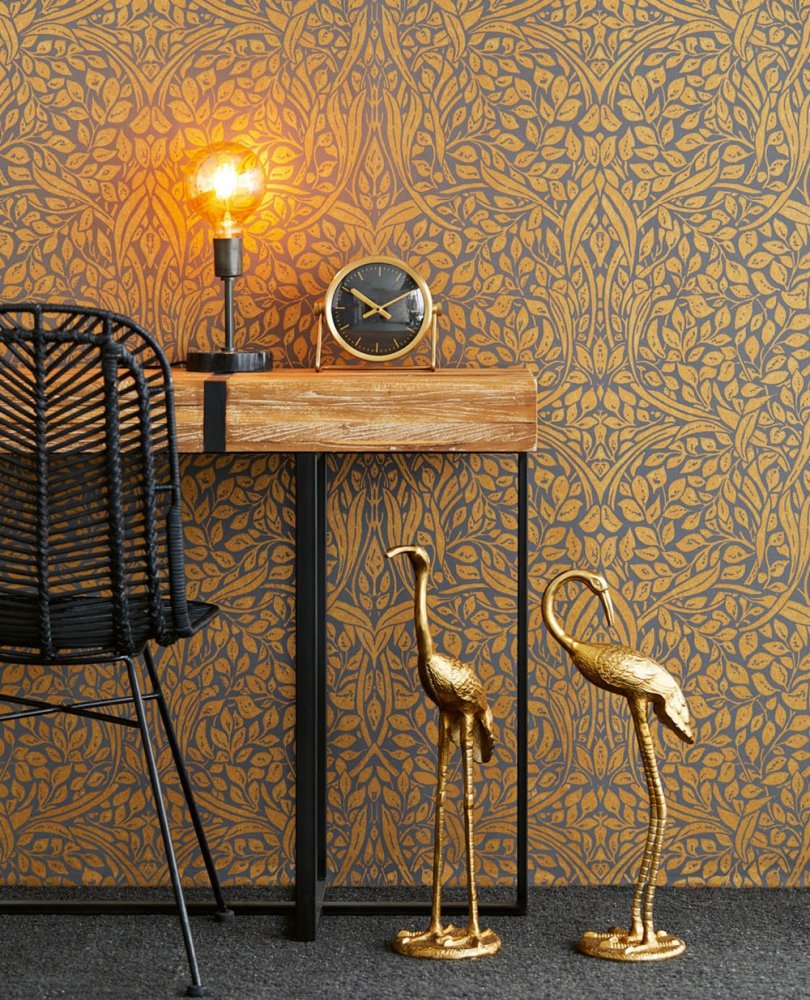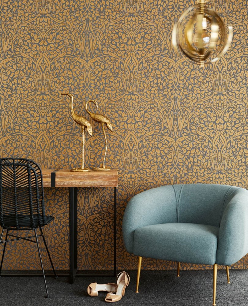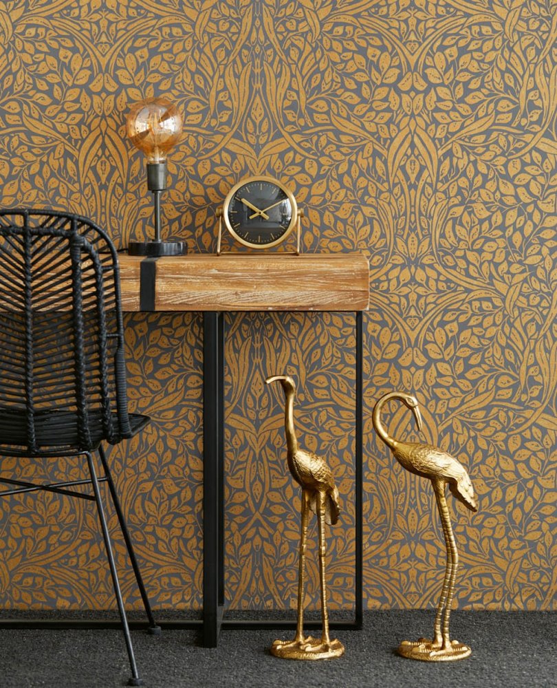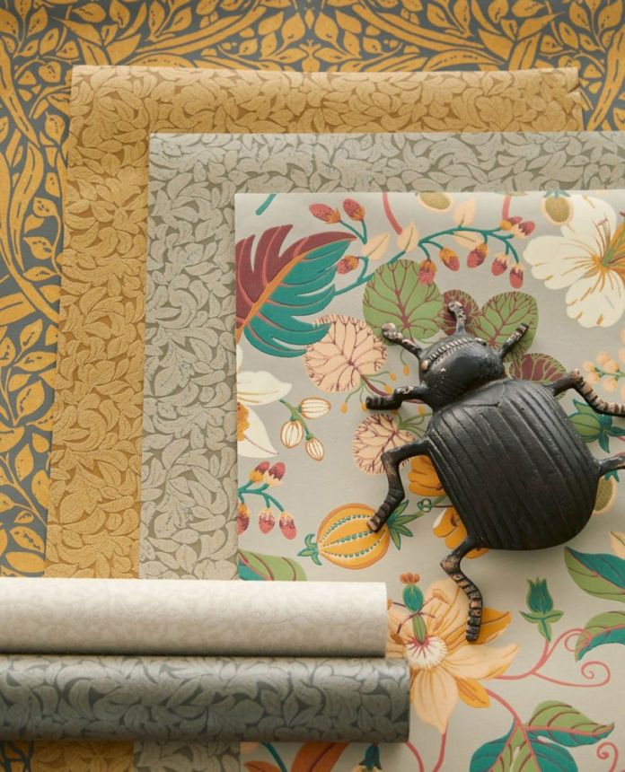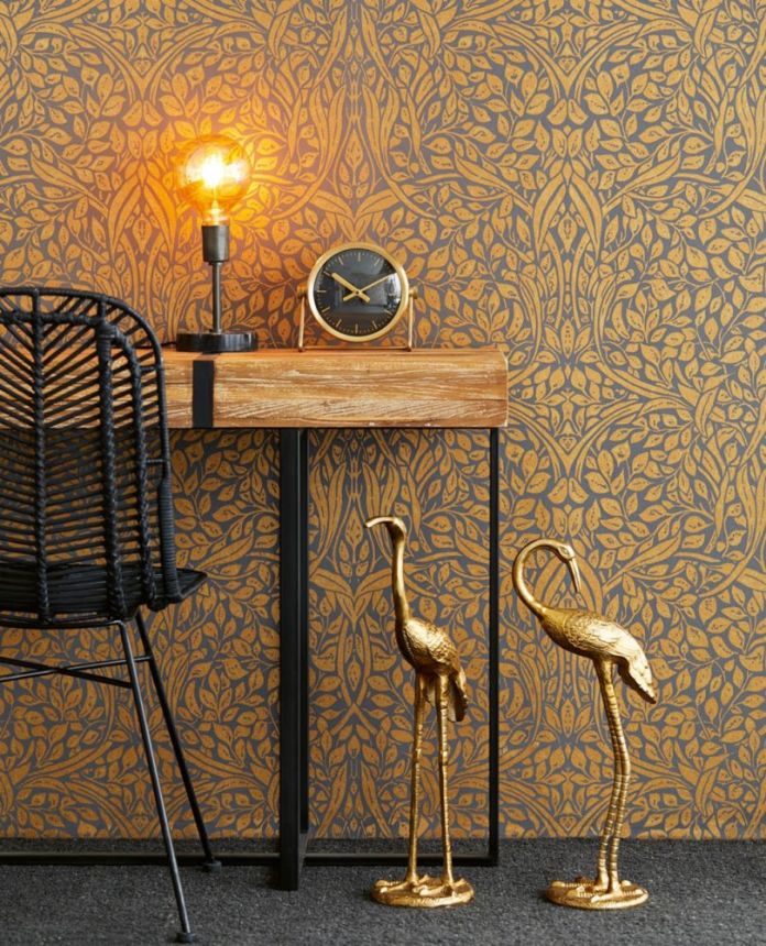 "Swirling leaves" - brown background, leaves golden-bronze shades. Collection inspired by a work of the bold, independent and stylish Frida Kahlo.