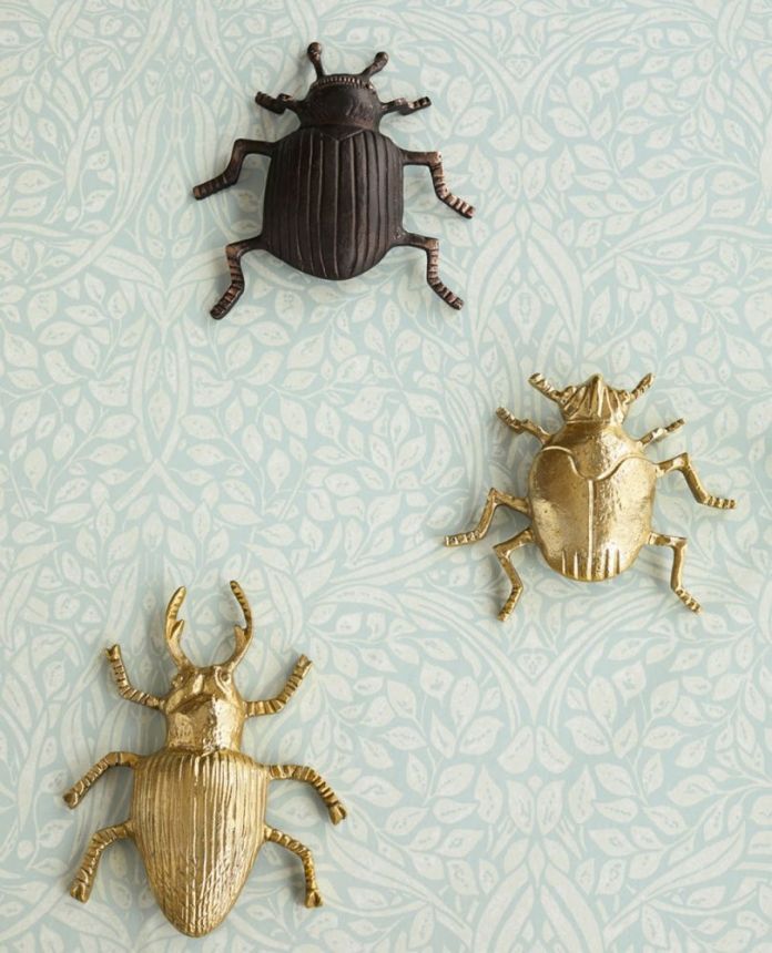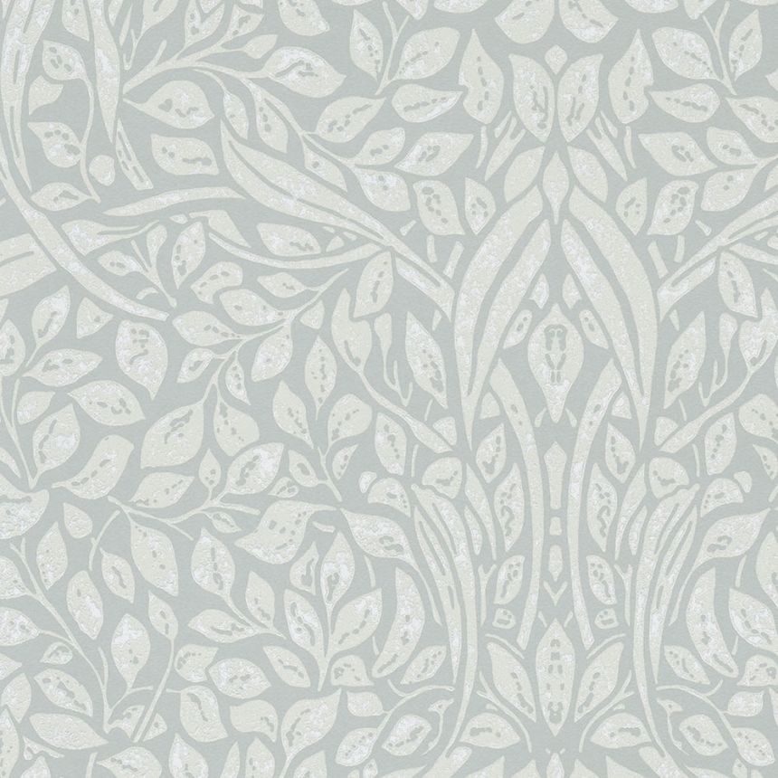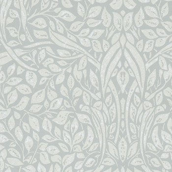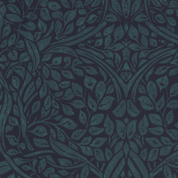 "Swirling leaves" - turquoise background, creamy-gray leaves. Collection inspired by a work of the bold, independent and stylish Frida Kahlo.