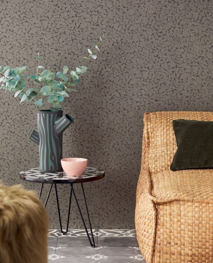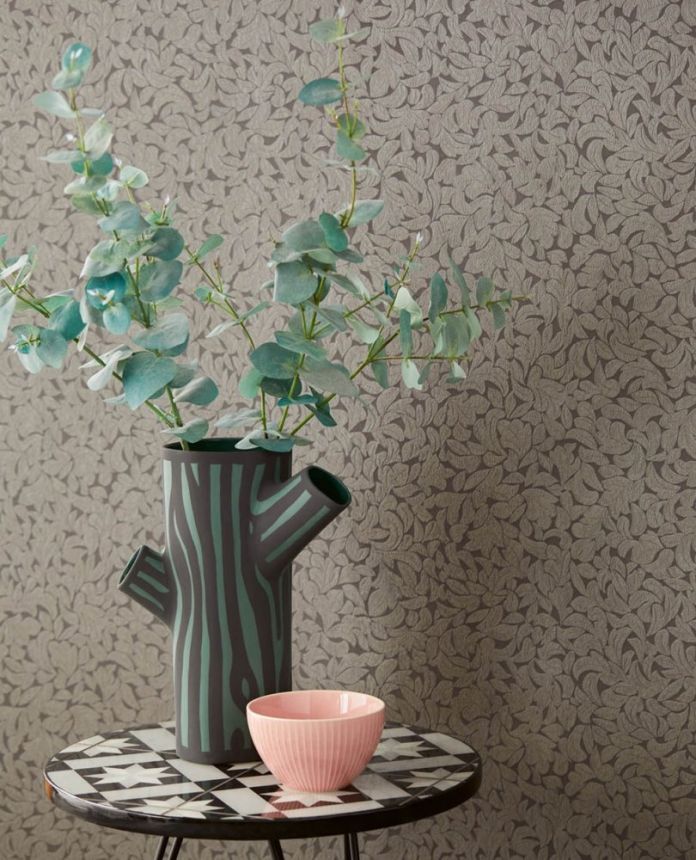 Finely embossed leaves motif. Background matt ecru / natural, fine pearl glossy pattern. Collection inspired by a work of the bold, independent and stylish Frida Kahlo.
