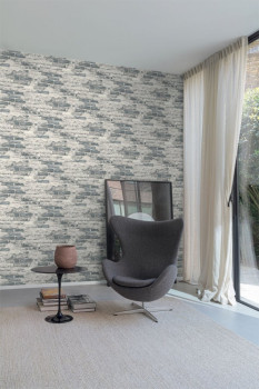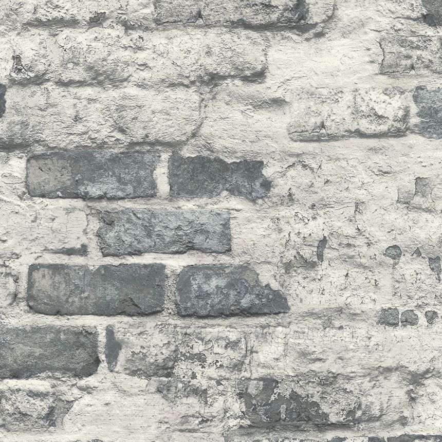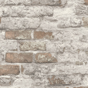 Non-woven, coarse textured wallpaper with brick wall motif in grey colour.