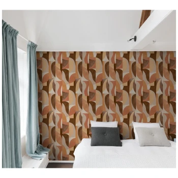 Modern geometric non-woven wallpaper in brown, beige and ocher tones.