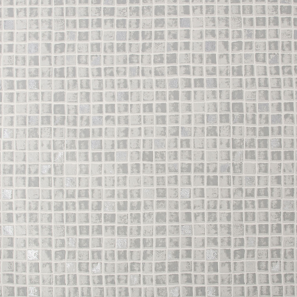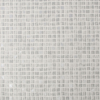 Non-woven wallpaper for bathroom or kitchen, with vinyl surface in light gray colour, imitation of tile mosaic.