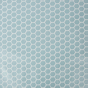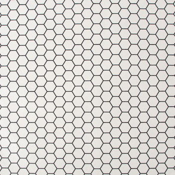 Non-woven wallpaper for bathroom or kitchen, with vinyl surface in white with black hexagons. Hexagon size approx. 3cm.