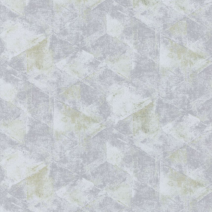 Gray non-woven wallpaper with golden metallic reflections and a distinctive stucco pattern.