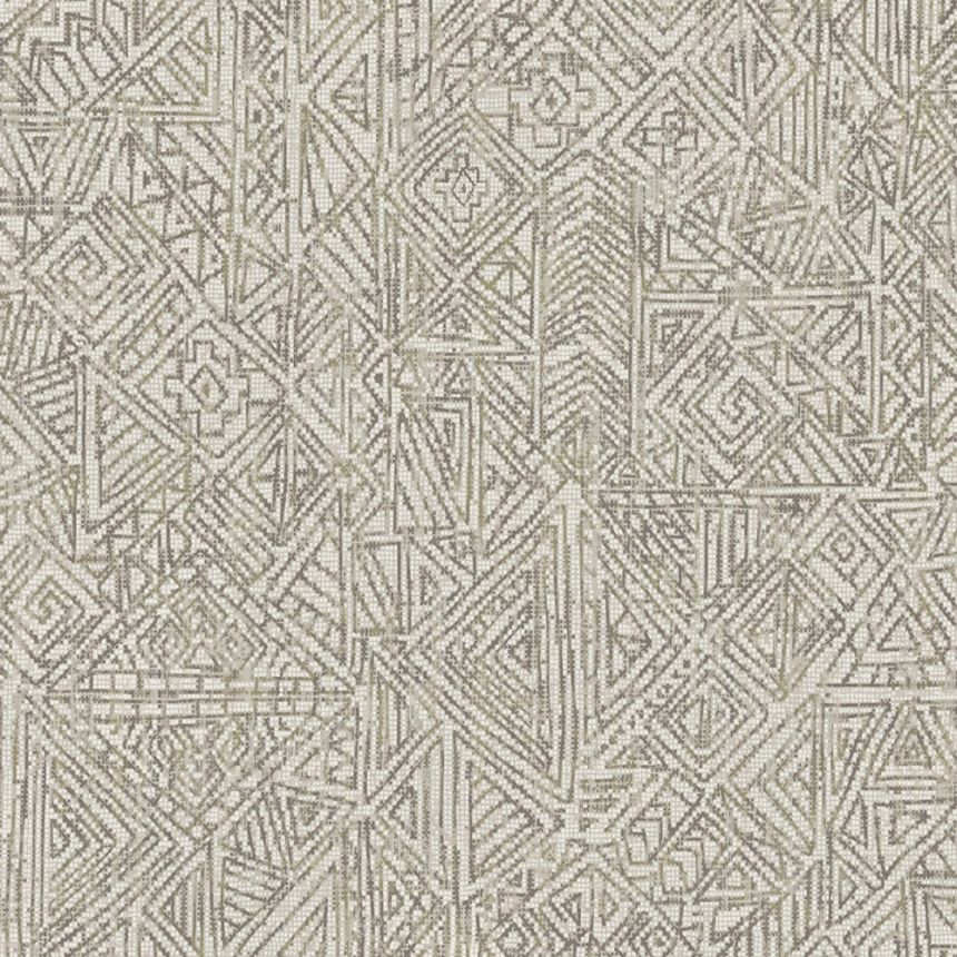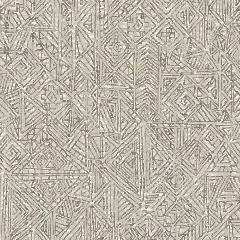 Finely embossed texture, design of ethnic drawings in brown-gold shades, gray-beige background.